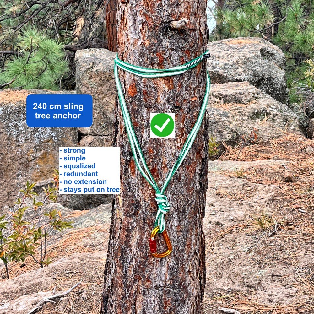 If you have a 120 cm sling and a smaller tree, you can make a “shoelace wrap” anchor.