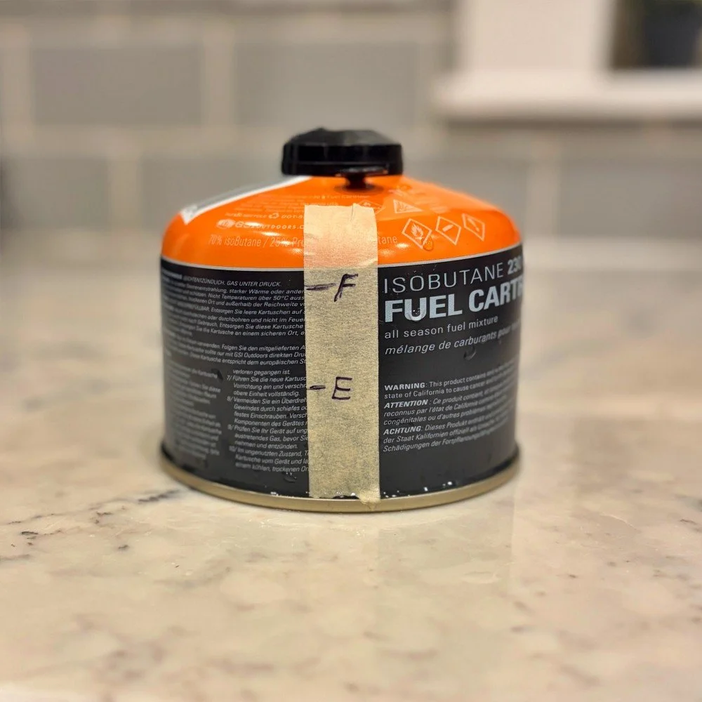 For other fuel canisters that don't have full and empty marked, you can put some tape on the can.