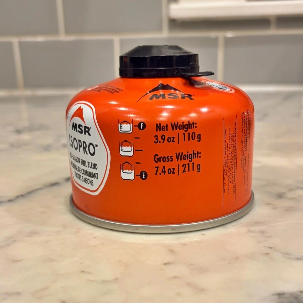 MSR cannisters conveniently have “Full” and “Empty” lines on the outside of their can, thanks MSR!