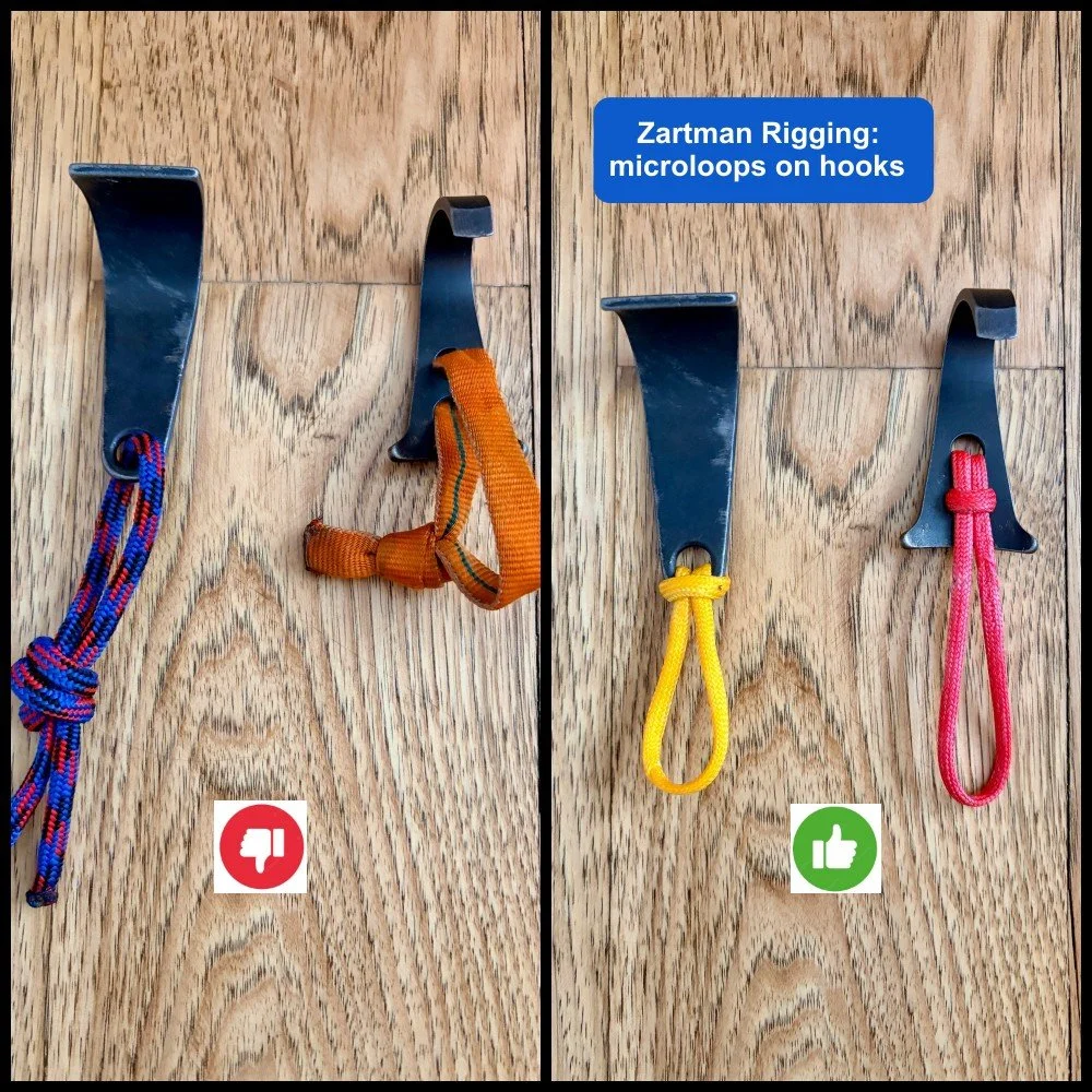 Attaching thick cord or webbing to hooks has always been a hassle. Up until now, the best option was to get loops custom sewn on your hooks from Skot’s Wall Gear.