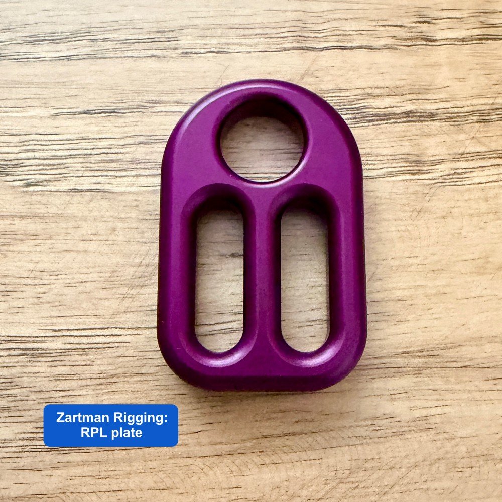 It's not all soft goods. Ben also sells the RPL (“rappel”, get it?) a cool micro belay plate designed for ultra skinny 6 mm ropes.