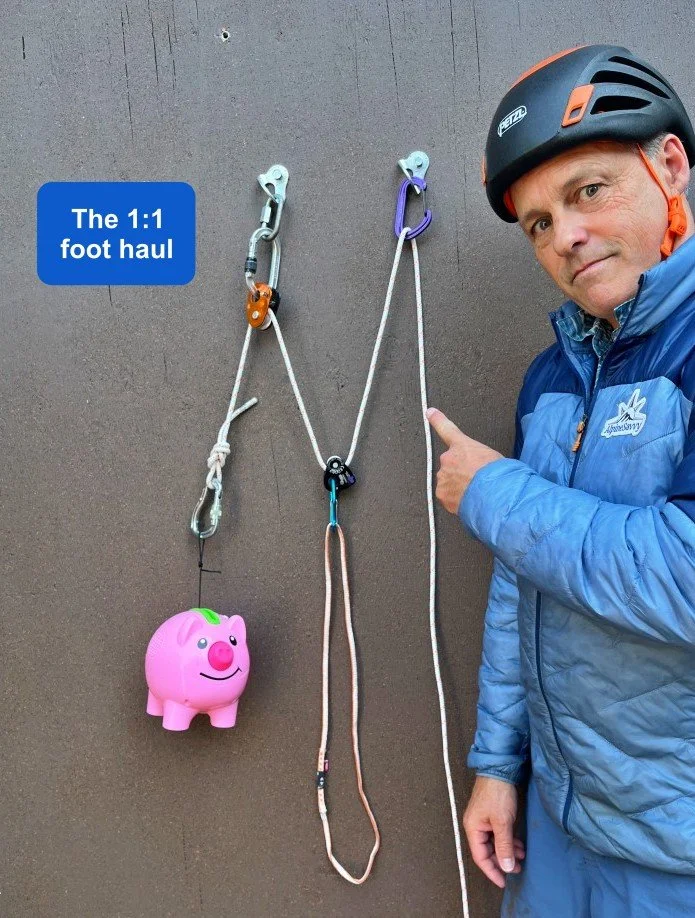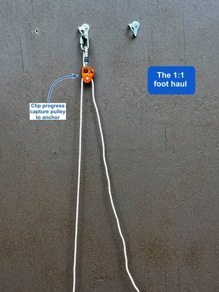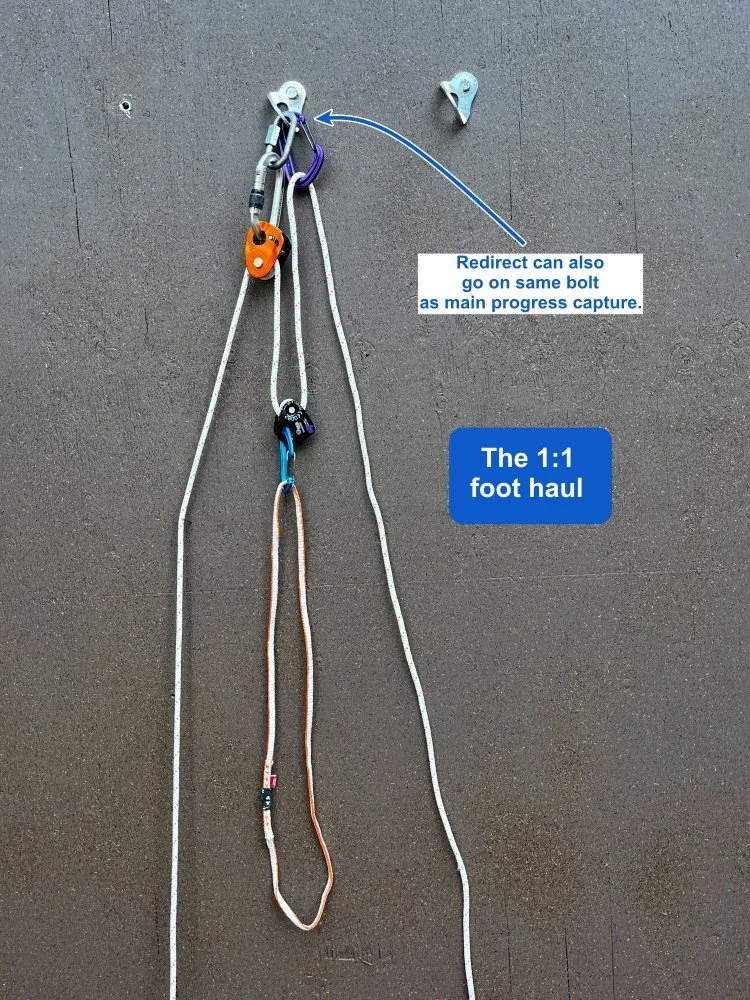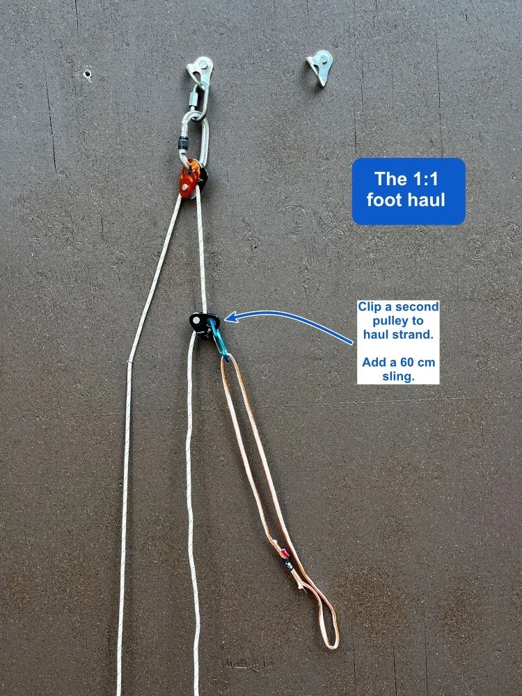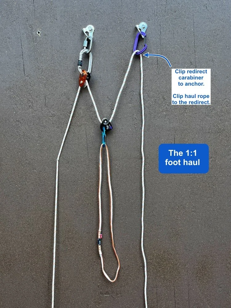 Rigging the 1:1 foot haul (Climber omitted for clarity)