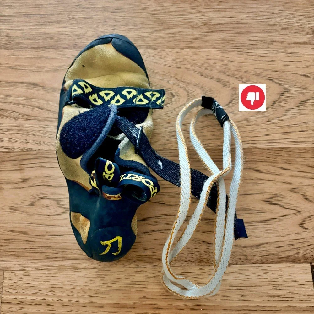 Try to store slings and shoes away from each other. Or at least, fasten the velcro on your shoes when you put ‘em in your pack.