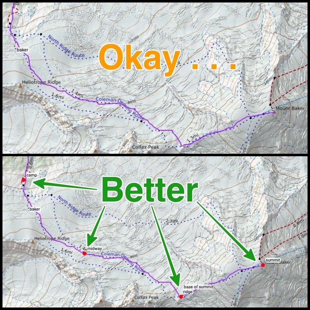 A GPS track file can be a great help in the backcountry to help you stay on route. What’s even better? A track file with waypoints added.