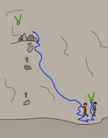 With the zigzag rappel, you attempt to move sideways as you go down, with either a pendulum or tension traverse, to make the next anchor off to one side and hopefully out of range of any falling rocks. For the next rap, you might swing back to the other side, hence the name.