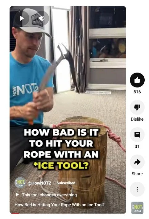 Test 3: Ridiculously beating on the rope like a manic woodpecker in the same spot with an ice tool ?!