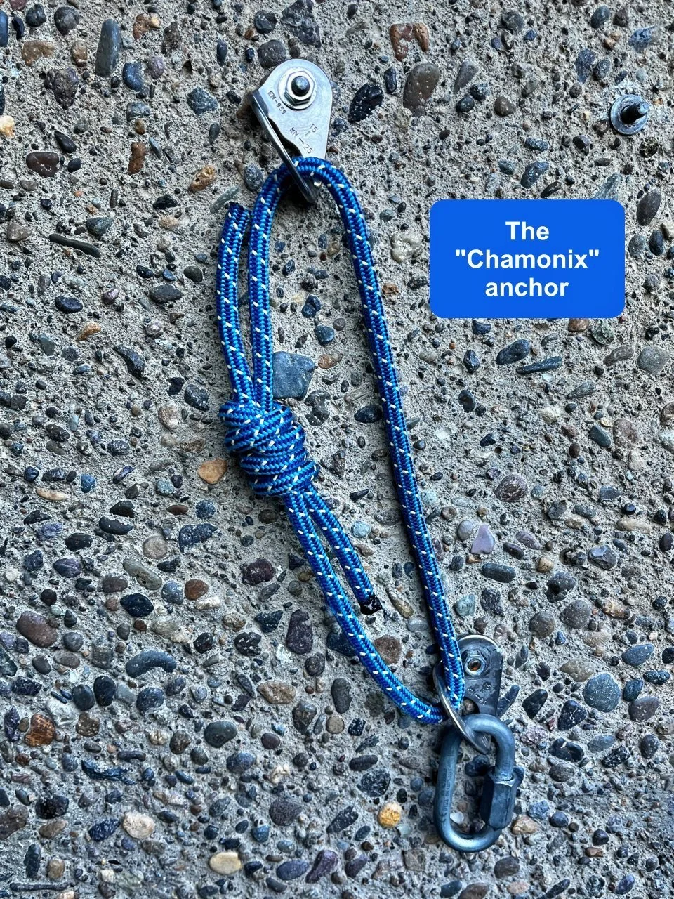 Here’s a flavor of vertical series alpine anchor that apparently is quite popular around Chamonix. This was brought to my attention by IFMGA Chamonix based Guide Dave Searle.