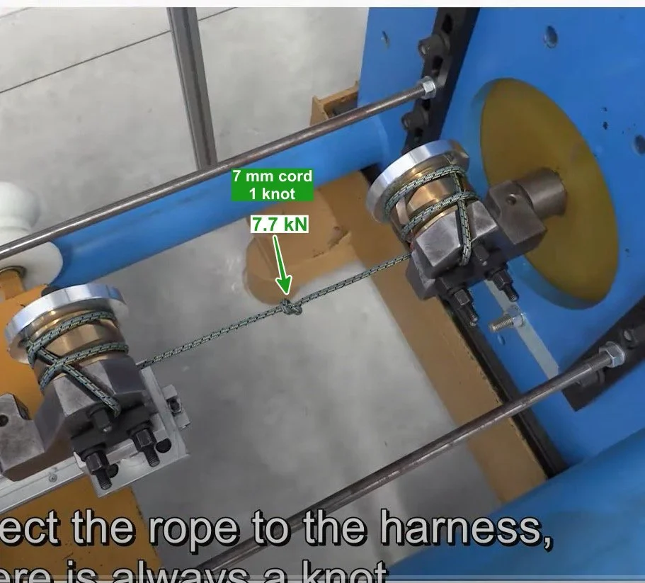 Let's have a look at some screen grabs of gear testing from the Alpine Club of Italy (Club Alpino Italiano, or CAI). The CAI has been break testing gear like this for decades, and they have some interesting videos about their studies.